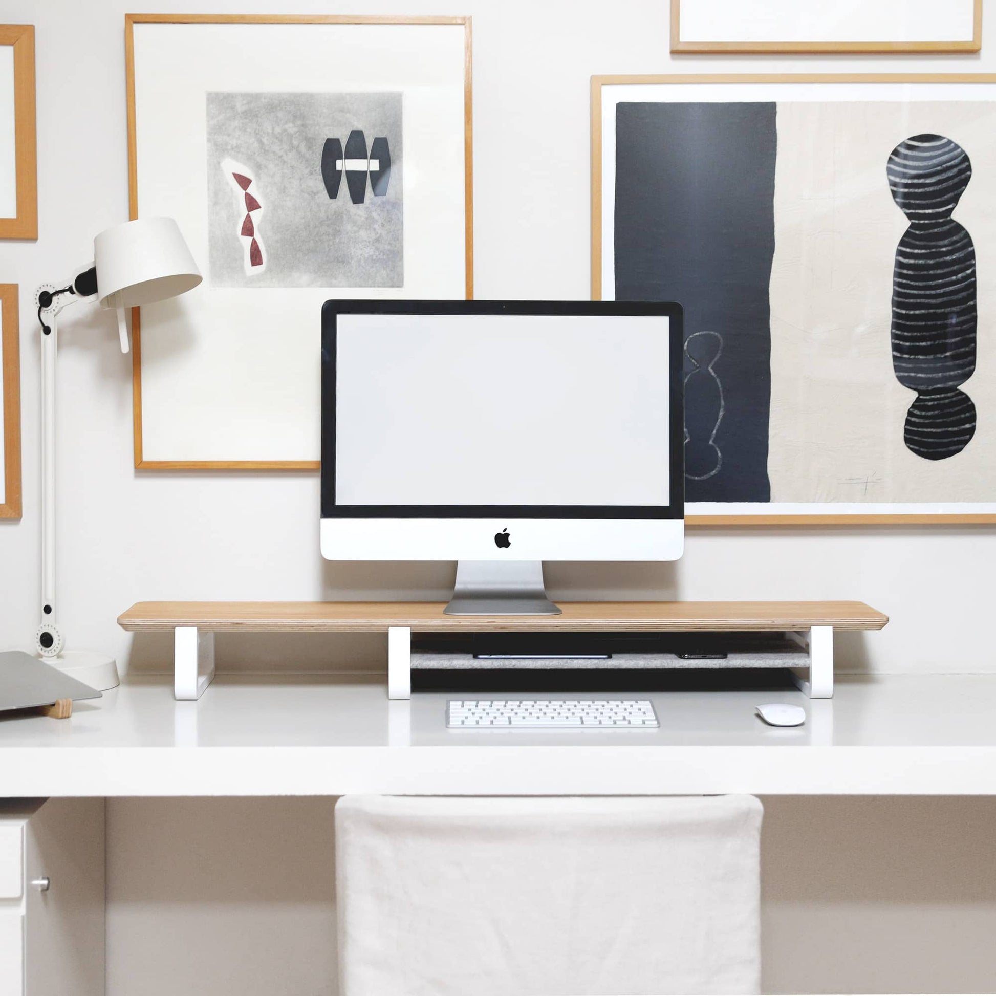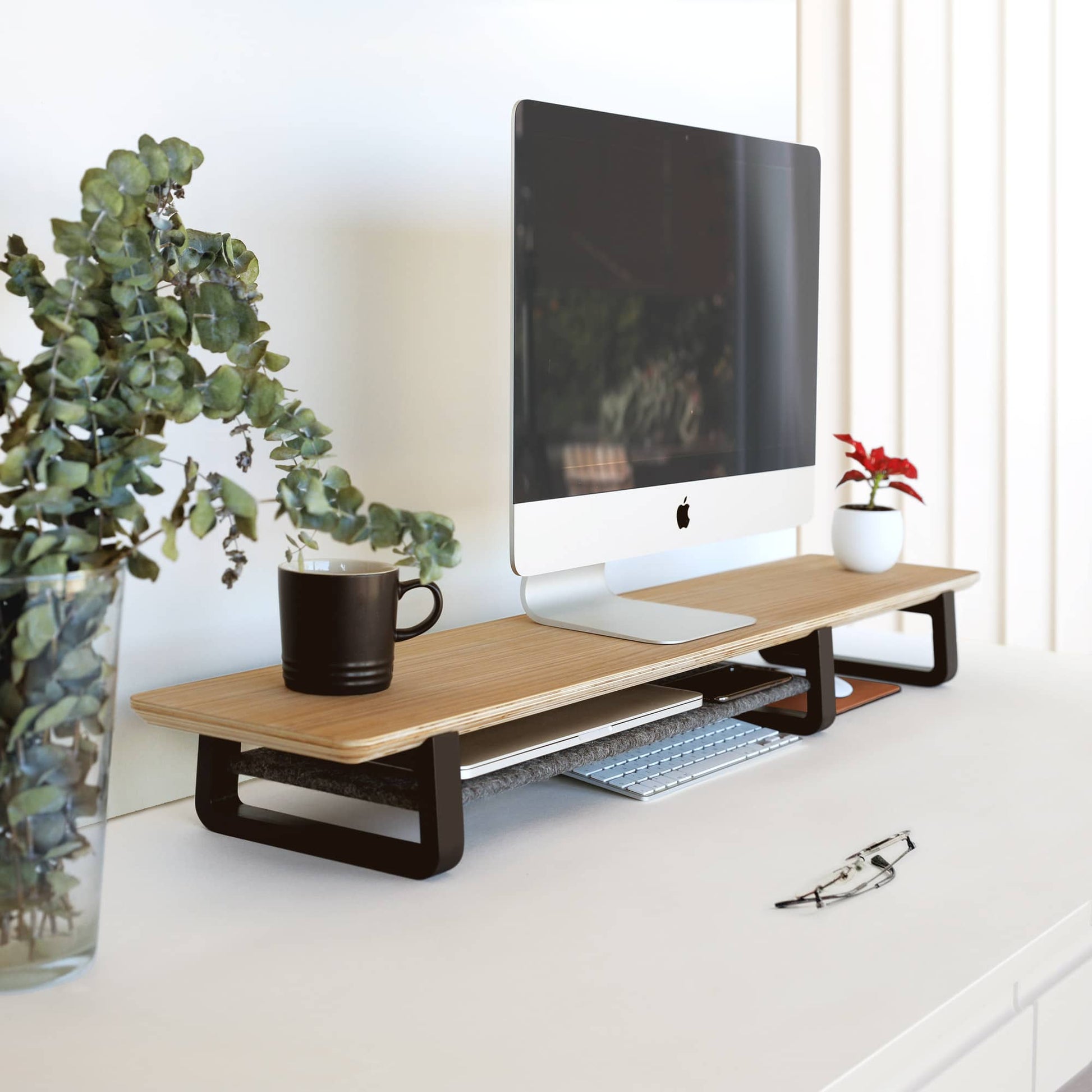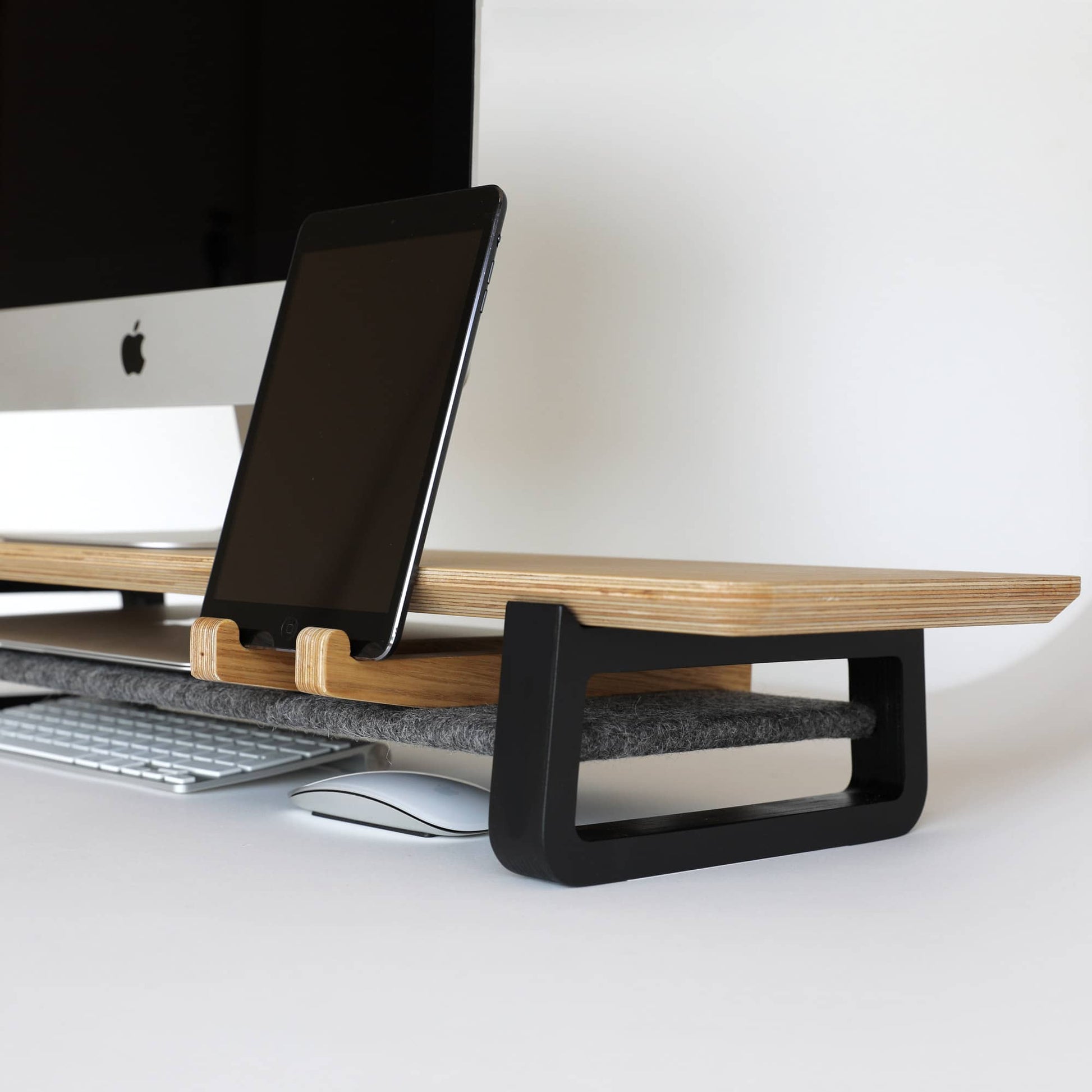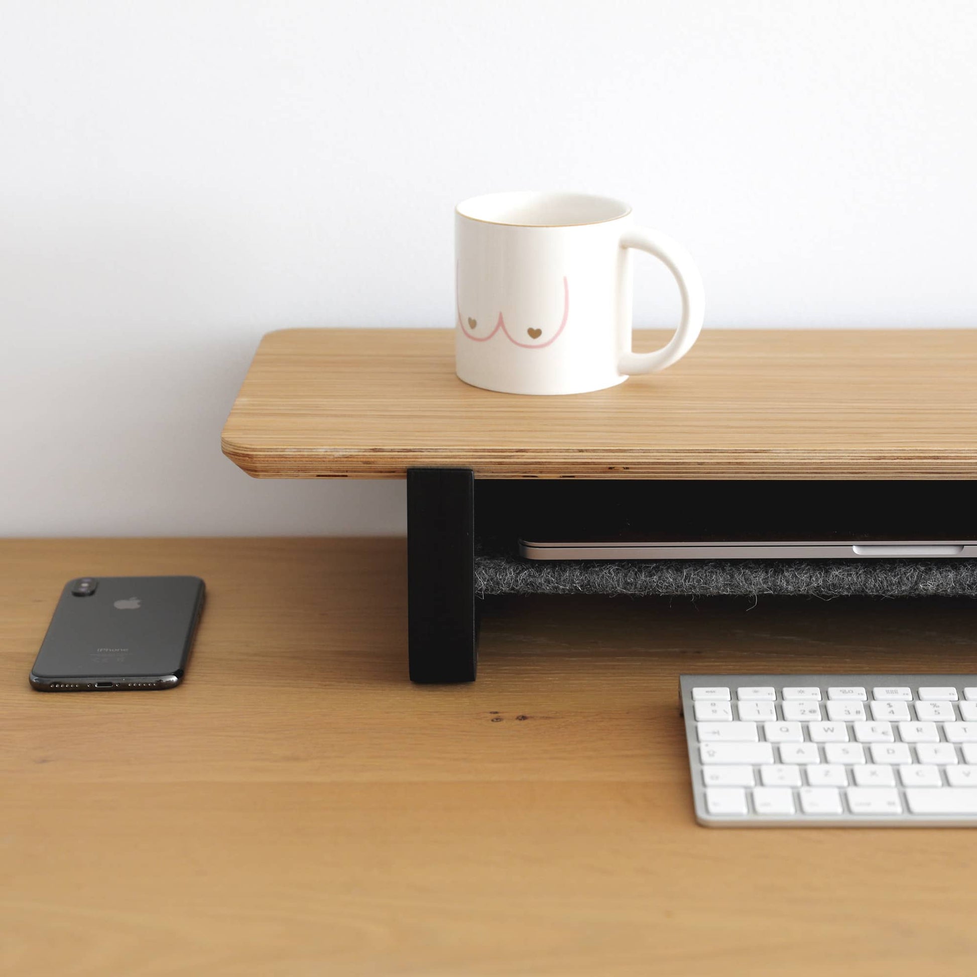 Fabricado con madera sostenible, este elevador minimalista está diseñado para mejorar tu experiencia de trabajo y añadir un toque de sofisticación a la configuración de tu escritorio.
